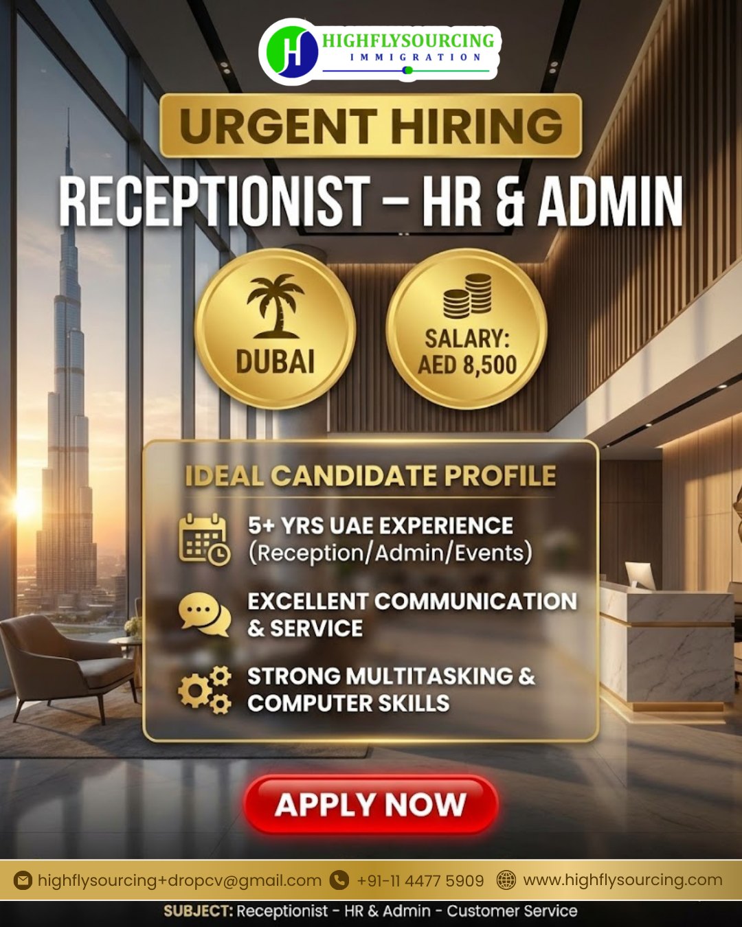 šØ URGENT HIRING ā Receptionist | HR & Admin ā Dubai š¦šŖ